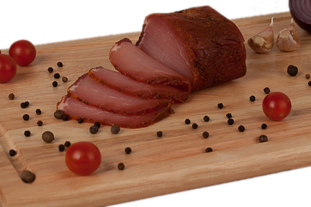 Карбонад “Президентский” Производитель: ГК "Поречье" Тип товара: Карбонад Свиной карбонад, сырокопченый. Вес: 0,6 - 0,9 кг.